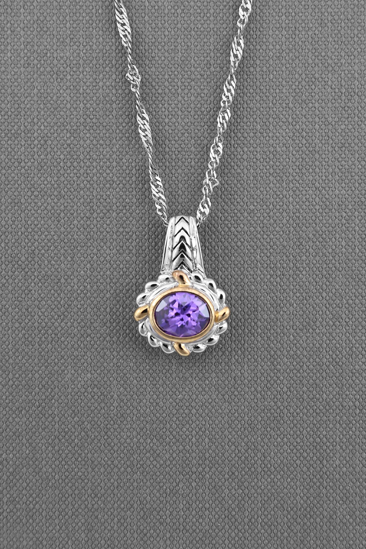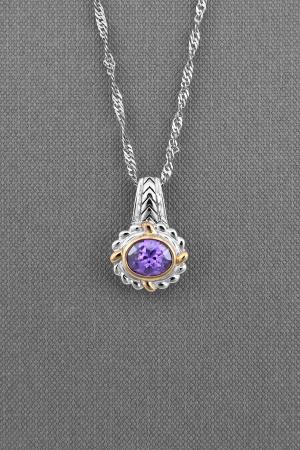 Cute and Delicated Sterling Silver Pendant with Amethyst Bezelled CZ l Adding Some Sparkle to Your Fashion l Two Tone Finish and Tarnish-resistant Treatment for Long Time to Wear