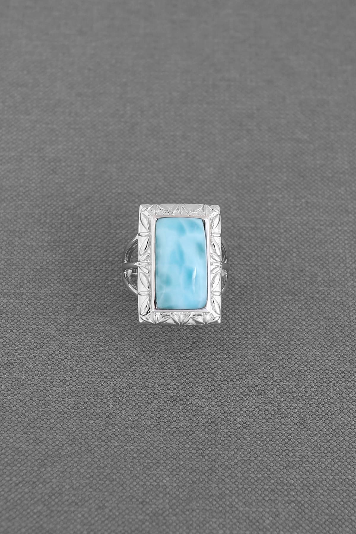 Large long square cocktail Larimar ring in sterling silver, rhodium finish with genuine stone size 10x18mm.