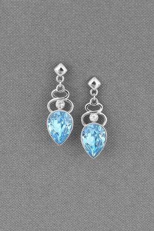 Silver plated earring, with 925 silver post back, decorated with blue topaz crystals 10x14mm pears from SWAROVSKI. Item size 11x33mm.