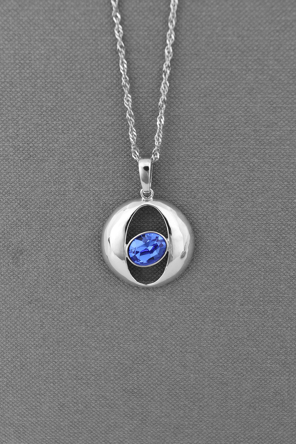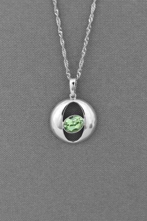Polished pendant with subdued shimmer of 8x10mm oval olive green crystal from SWAROVSKI brings to mind of mystery. Item size 24x35mm.