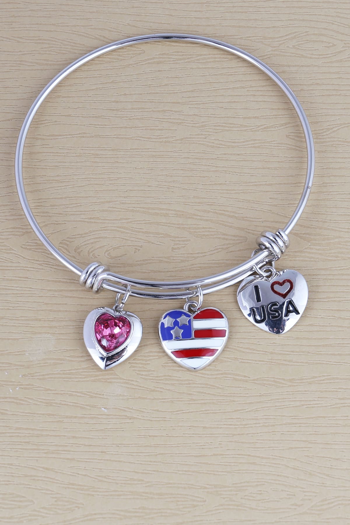 Heart design 7 : Love USA. Love my country and people here. This bracelet is designed to be delicate, firm, durable and well-enameled with rose Swarovski crystal, So with proper jewelry care you can wear for pretty long time.