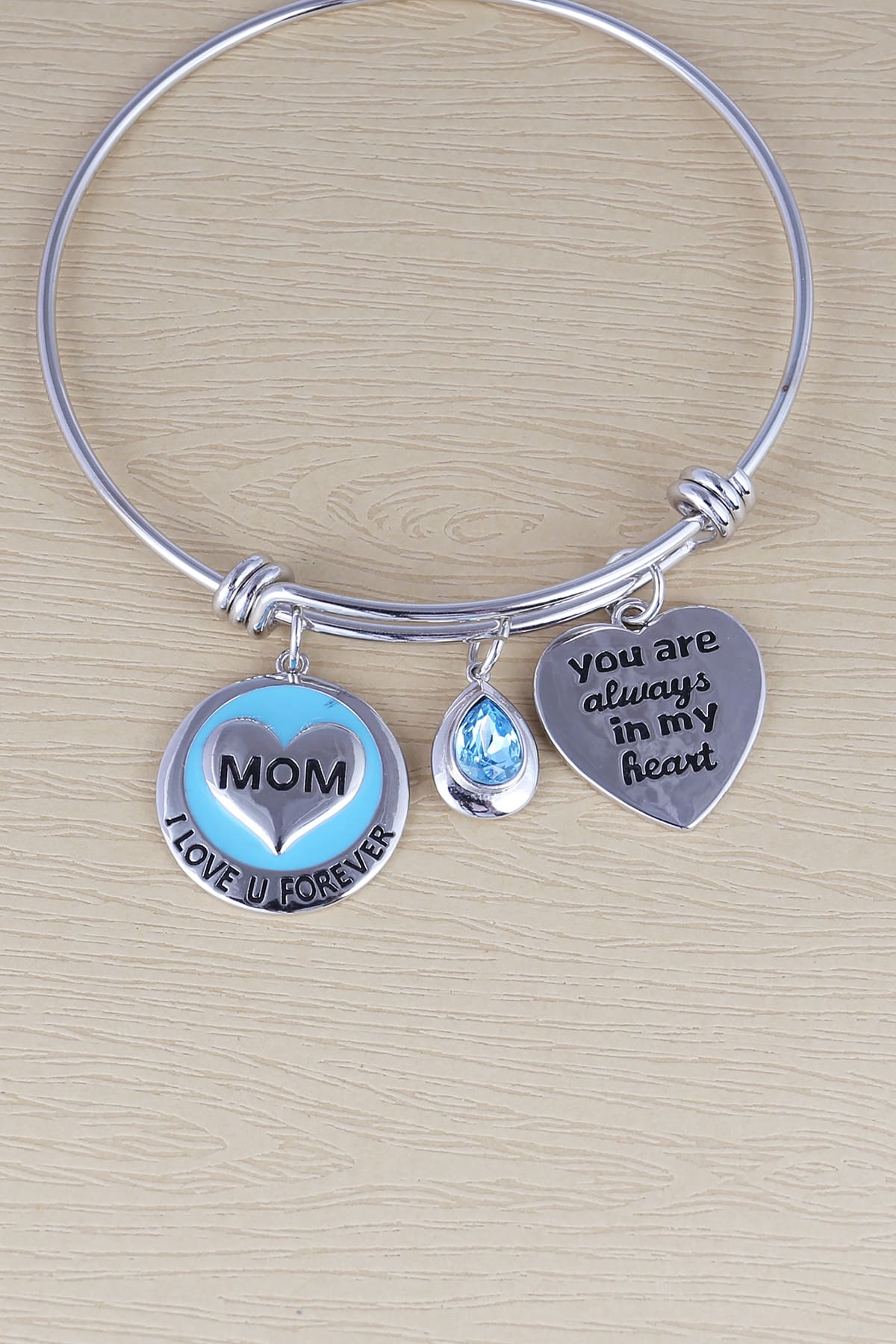 Heart design 10 : Love you forever, Mom. Be healthy, happy and charming at any time. You are always in my heart. This bracelet is designed to be delicate, firm, durable and well-enameled with blue topaz Swarovski crystal, So with proper jewelry care Mom can wear for pretty long time.