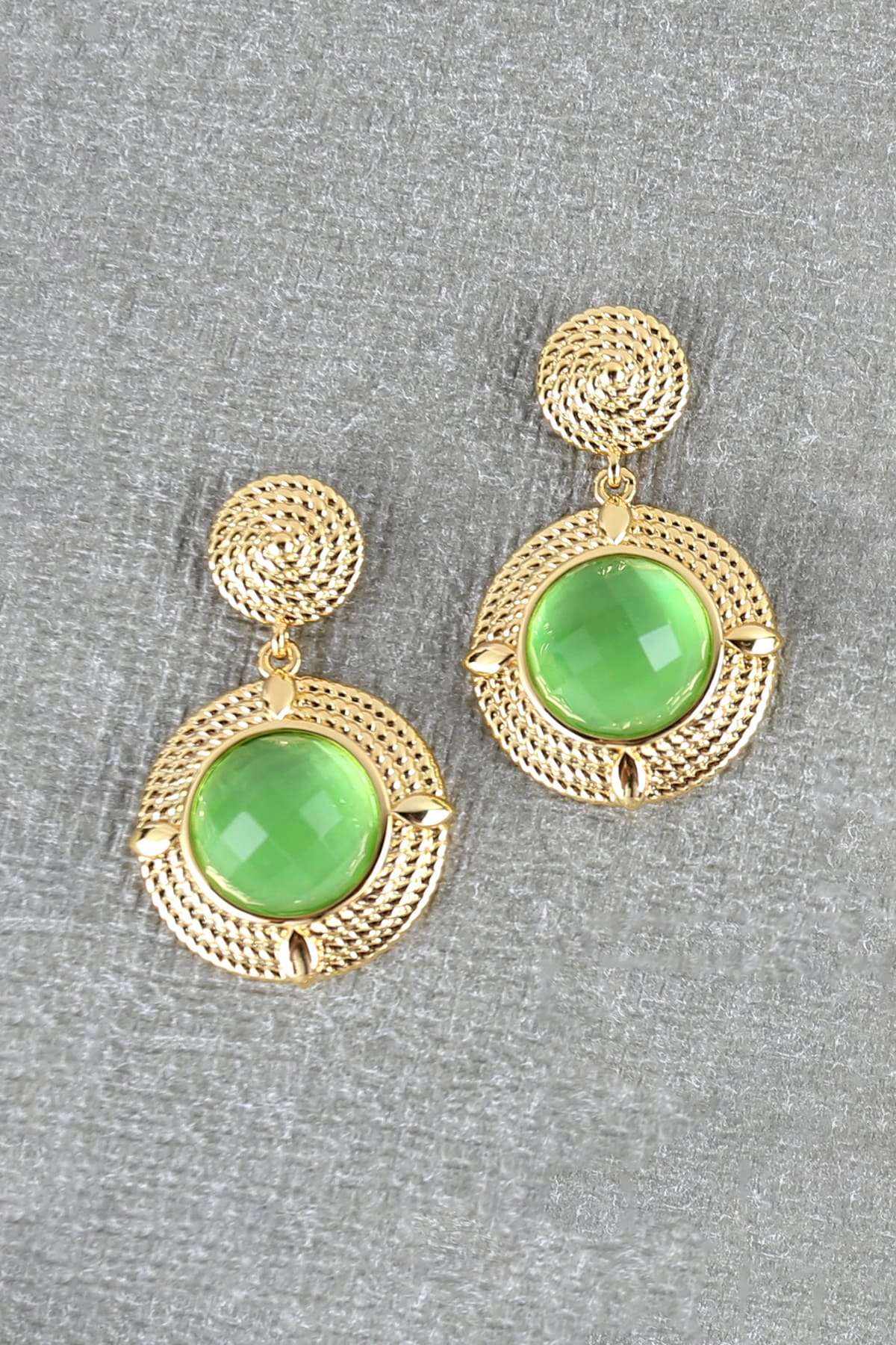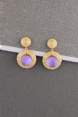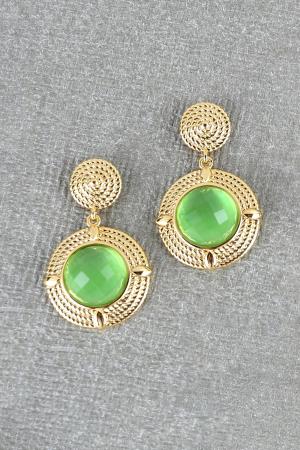 Elaborated triplilet rope framed stud and dangle round drop encrusted with a faceted color crystal glass gem centerpiece creates this graceful jewelry pair having both elements of classical and modern.