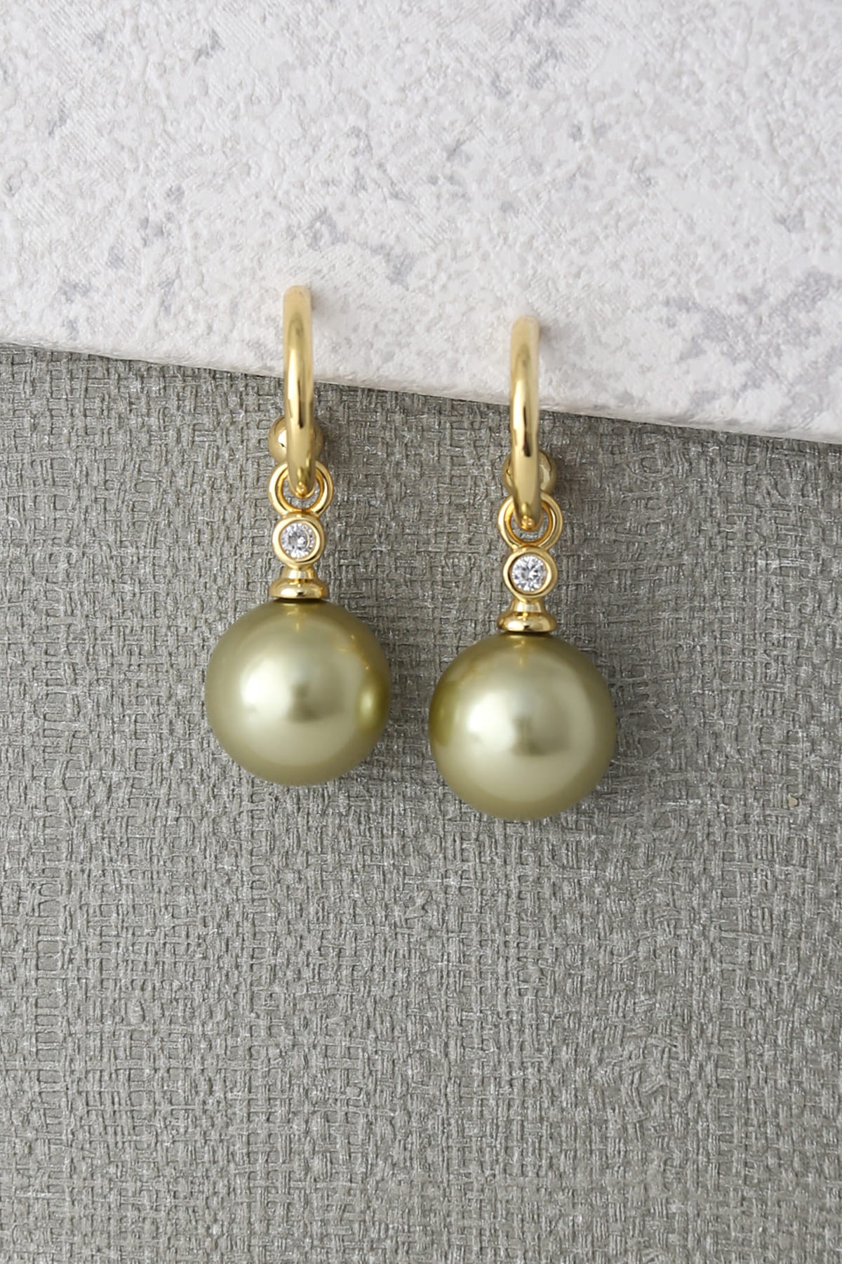 Description : An open polished hoop linking to color shell pearl drop makes this simple, neat and