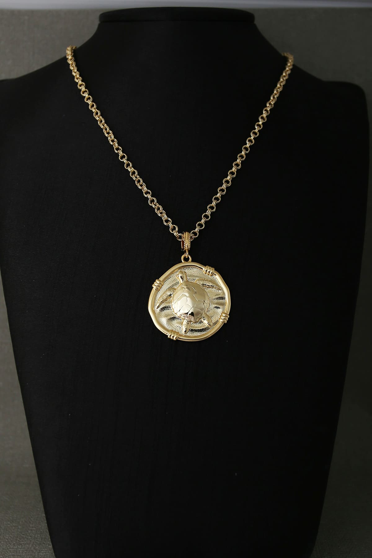 Description : 'Ocean turtle-rose flower' textured two-side available coin drop, which can be worn