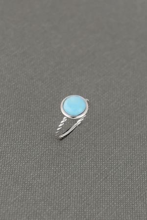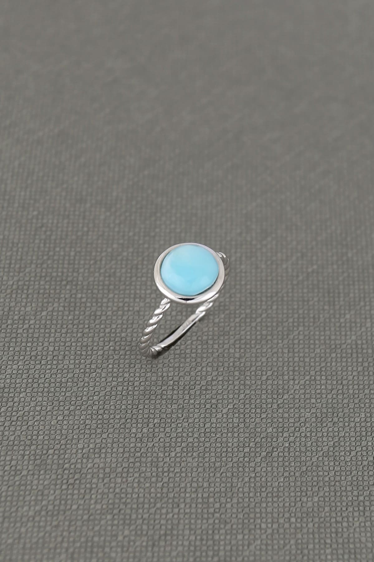 Dainty Larimar sterling silver ring rhodium plated with rope-twisted band, high quality stone cab 8mm round.