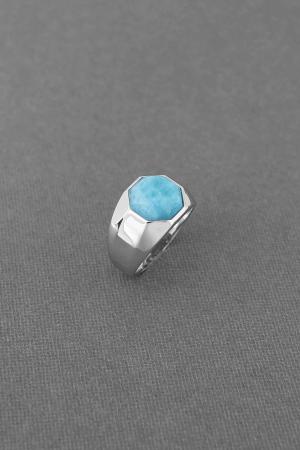 Larimar high-polished MEN's RING in 925 sterling silver with genuine octagon-shaped AAA stone quality.
