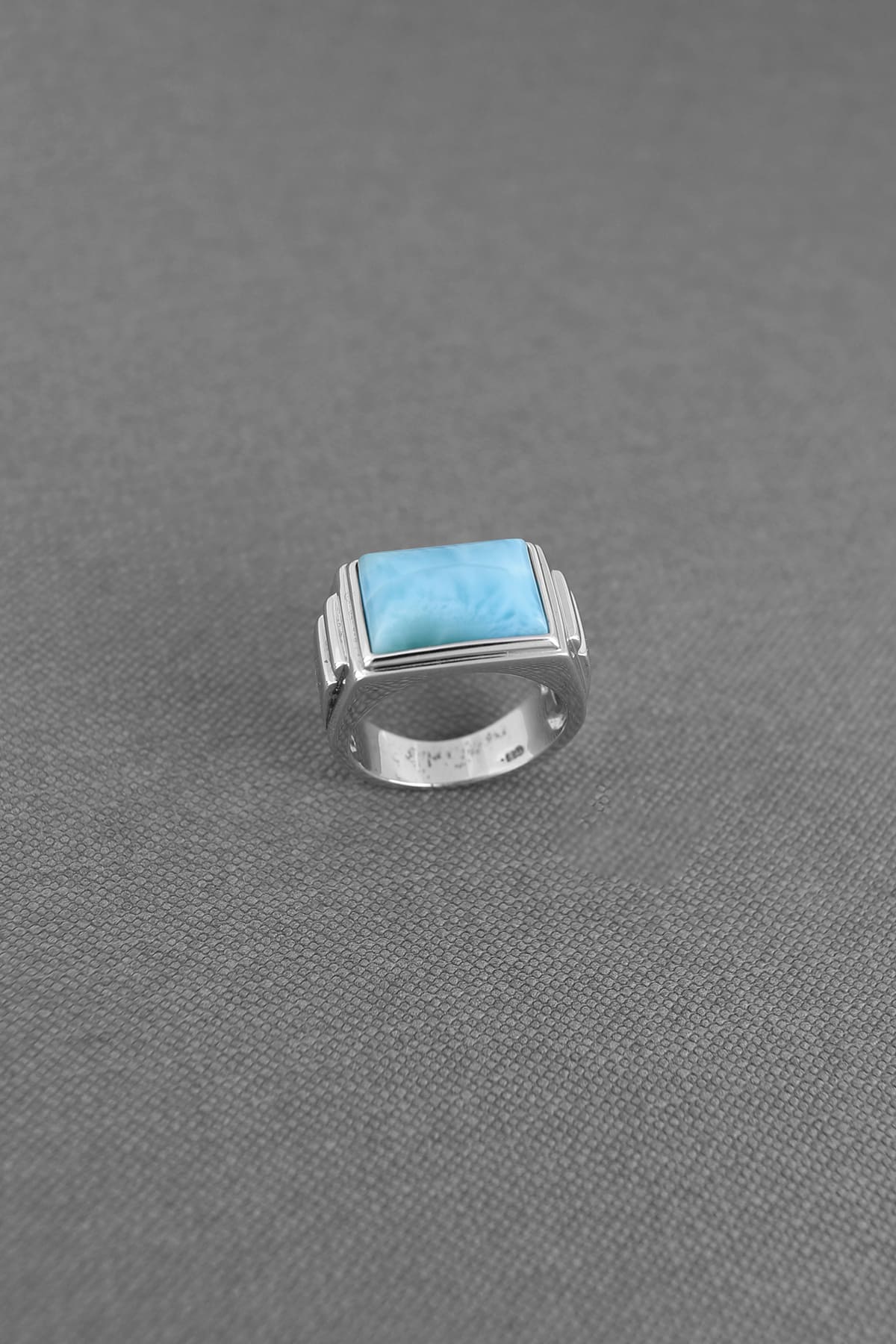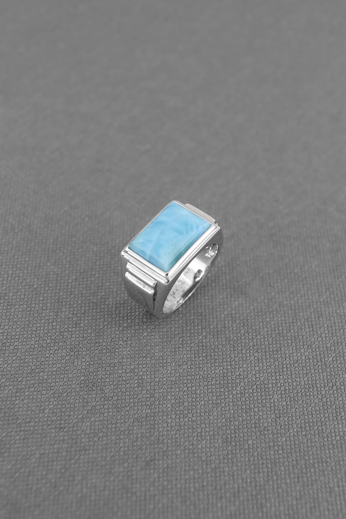 Larimar MEN's RING -- made from 925 sterling silver and rhodium finish with hand crafted inlaid larimar stone 10x14mm rectangular.