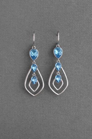 Silver plated earring, with 925 silver hook, decorated with 4x6mm & 6x8mm pear blue topaz crystals from SWAROVSKI. Item size 15x50mm