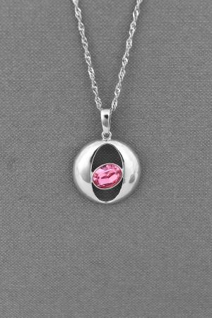 Polished pendant with subdued shimmer of 8x10mm oval olive green crystal from SWAROVSKI brings to mind of mystery. Item size 24x35mm.