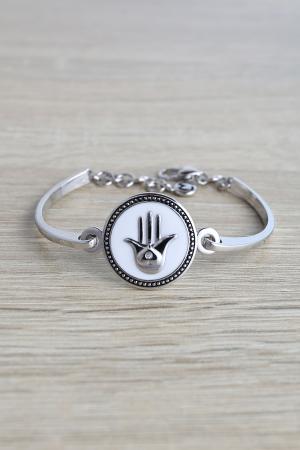 Design of "Hamsa hand' protective amulet on two-bar chain bracelet, a delicated and well-enameled metal piece with hook closure. brings you safety and beauty. Center disc size 25x25 mm.