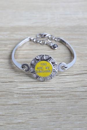 Enjoy the sunshine to bring yourself or a loved one a bright dayly life. This is a durable and well-enameled two-bar bracelet with rope chain closure. Disc size 25x25 mm.