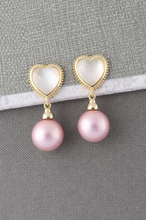 Exquisite earring of color shell pearl beadrop linking with a raise-framed white mother of pearl stone heart stud casts you a dazzling and tempting outlook whatever you are in casual outfits or dress up. This is a firm, durable and delicated jewelry pair for your long wearing.